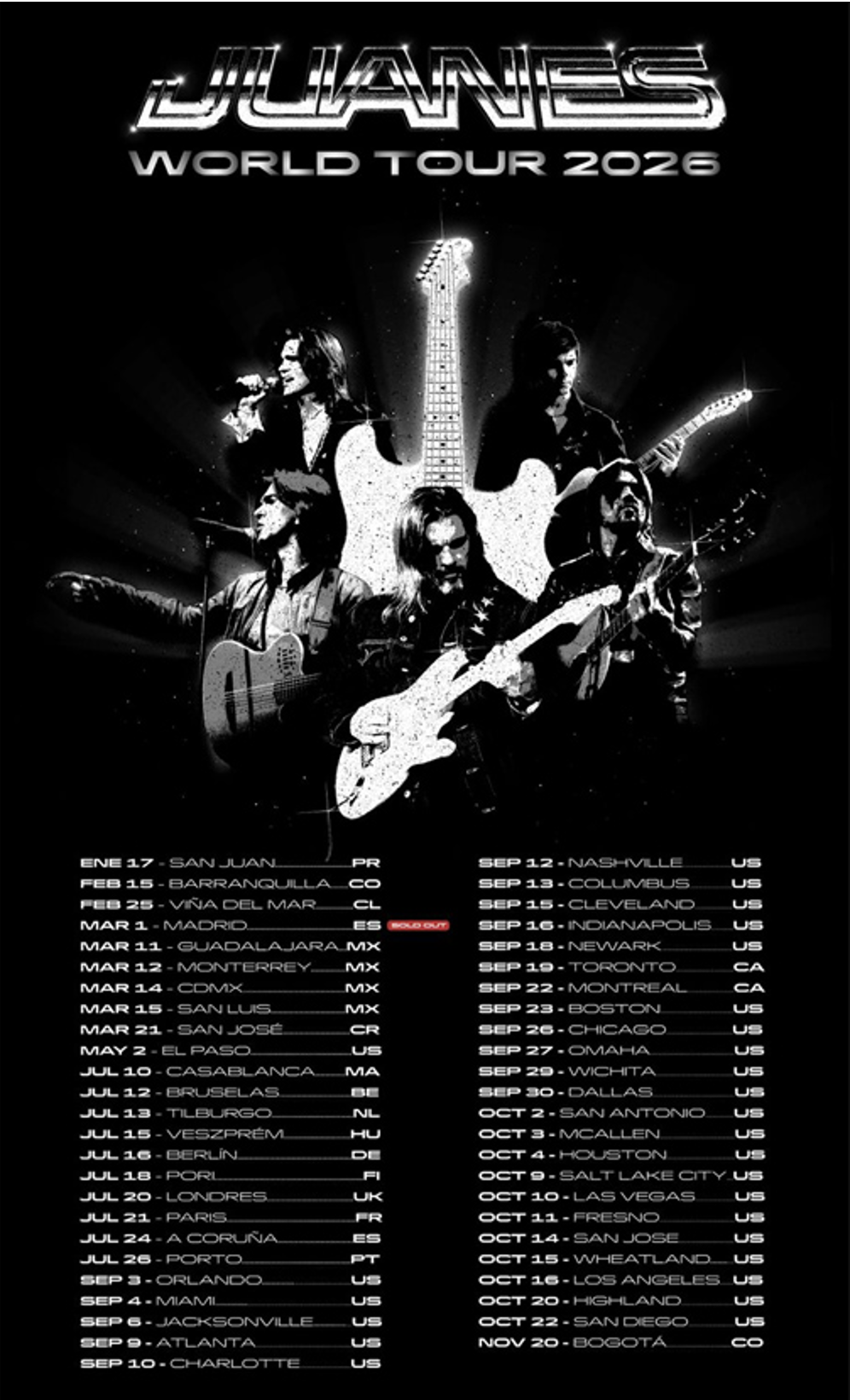 FECHAS DE LA GIRA DE JUANES EN NORTEAMÉRICA: